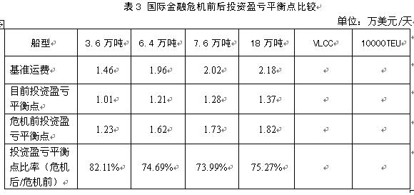 從另外一個角度來看,國際金融危機(jī)爆發(fā)后訂造的同型船盈虧平衡點遠(yuǎn)遠(yuǎn)低于危機(jī)前訂造的船舶。以靈便型散貨船、大靈便型散貨船、巴拿馬型散貨船和MR型成品油船為例,國際金融危機(jī)爆發(fā)后訂造的船舶盈虧平衡點普遍降至危機(jī)前訂造的80%左右。