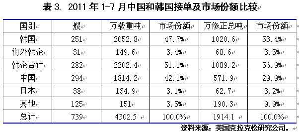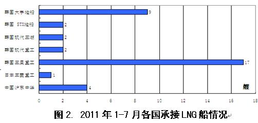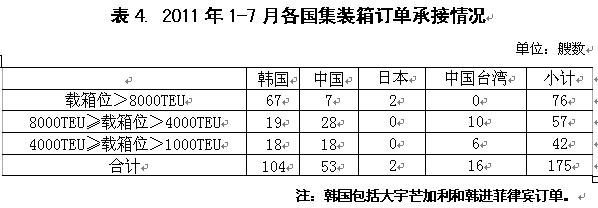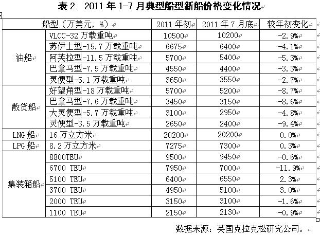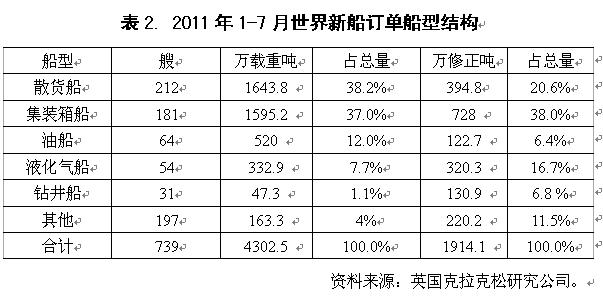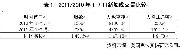 2011年1-7月國際造船市場新船需求總量同比出現(xiàn)大幅下滑,但需求結(jié)構(gòu)朝高技術(shù)高附加值船型轉(zhuǎn)變,受此影響,全球船舶市場競爭格局也發(fā)生顯著變化。從影響行情發(fā)展主要因素看,無論是經(jīng)濟發(fā)展、航運市場供求關(guān)系,還是船舶融資市場狀況,下半年出現(xiàn)明顯改觀的難度很大,船舶市場面臨形勢更加復雜嚴峻。