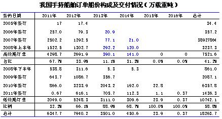 手持訂單中,低價船(危機爆發(fā)后承接訂單)所占比例接近60%,2012年交付訂單中低價船訂單所占比例預(yù)計將達66%,而2013年這一比例接近90%。