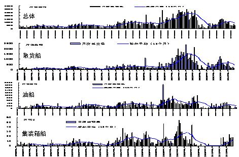 2) 導(dǎo)致市場波動大:船舶運力增減與海運量升降不同步(滯后2年左右),從而,使航運市場上供求不平衡加劇。(同樣船廠建設(shè)周期長,產(chǎn)能變化不能與需求匹配)。