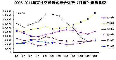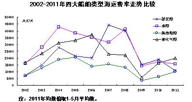 國際航運市場整體上表現(xiàn)低迷,運費水平明顯低于上一年水平,個別月份甚至跌破2009年同期水平。