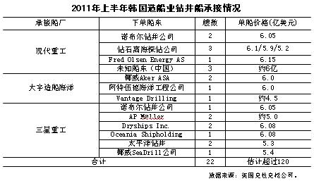 1-6月現(xiàn)代重工、三星重工和大宇造船海洋合計接單總金額超過330億美元,不知道是同期中國全行業(yè)接單價值總量的多少倍?