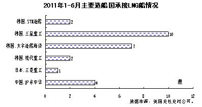 上半年全球成交LNG船26艘,其中,韓國承接21艘,中國4艘和日本1艘。