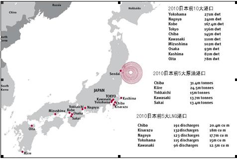 大地震發(fā)生后,日本立即關(guān)閉國內(nèi)所有港口,據(jù)英國勞氏統(tǒng)計(jì),當(dāng)日日本因港口關(guān)閉造成的損失達(dá)34億美元。日本港口主要分布在南部地區(qū)和東南部,多數(shù)港口離震區(qū)較遠(yuǎn),沒有受到直接沖擊。目前,我們只知道位于震區(qū)的仙臺港遭遇毀滅性破壞,盡管該港口是日本比較重要的集裝箱、原油港口,但是對整個(gè)日本港口運(yùn)營影響十分有限。