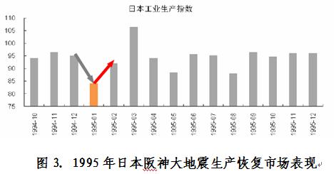 由此可見,無論是整個(gè)國家經(jīng)濟(jì)結(jié)構(gòu),災(zāi)害初評估,或受災(zāi)地區(qū)在國民經(jīng)濟(jì)中地位和對國民經(jīng)濟(jì)實(shí)際影響等角度,此次地震(海嘯)帶來的影響可能要弱于1995年阪神地震。同時(shí),大家知道1995年阪神地震對生產(chǎn)的實(shí)際影響也是短期的,震后生產(chǎn)恢復(fù)非常迅速,并且某種程度上有效帶動(dòng)本國經(jīng)濟(jì)繁榮。為此,我們認(rèn)為此次地震危害對日本工業(yè)生產(chǎn)帶來的沖擊總體上較為有限。