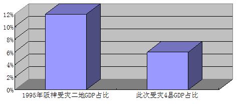 第三,受災(zāi)地區(qū)占本國經(jīng)濟(jì)總量比重不大。本次受災(zāi)4縣(主要4縣,分別為日本巖手縣、福島縣、宮城縣和茨城縣)占日本在6%左右,而1995年大阪和兵庫兩個(gè)最嚴(yán)重的受災(zāi)區(qū)(不包含其他波及地區(qū))占當(dāng)時(shí)日本全球GDP比重達(dá)12.4%。此次受災(zāi)地區(qū)4縣與1995年阪神地區(qū)在當(dāng)時(shí)日本經(jīng)濟(jì)中的地位無法相提并論。