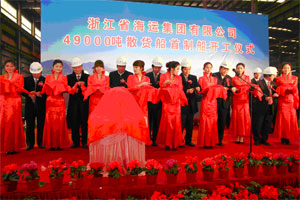 2012年2月24日上午10時(shí)28分,浙江省海運(yùn)集團(tuán)有限公司4.9萬(wàn)噸散貨船首制船開工儀式在舟山五洲船舶修造有限公司隆重舉行。中國(guó)船級(jí)社副總裁兼上海分社總經(jīng)理莫鑒輝和省、市海事局、浙江省海運(yùn)集團(tuán)、上海佳豪船舶工程設(shè)計(jì)股份有限公司以及有關(guān)單位領(lǐng)導(dǎo)出席了開工儀式。