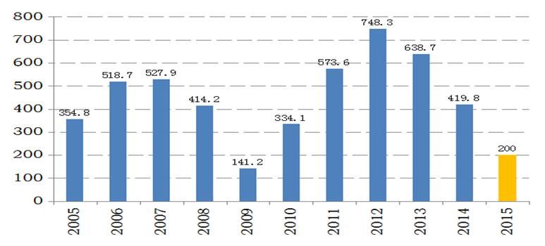 1)三大主力船型市場(chǎng)均處于下行狀態(tài),2015年總體情況不容樂觀,成交量較上一年大幅萎縮至7000萬(wàn)載重噸左右。