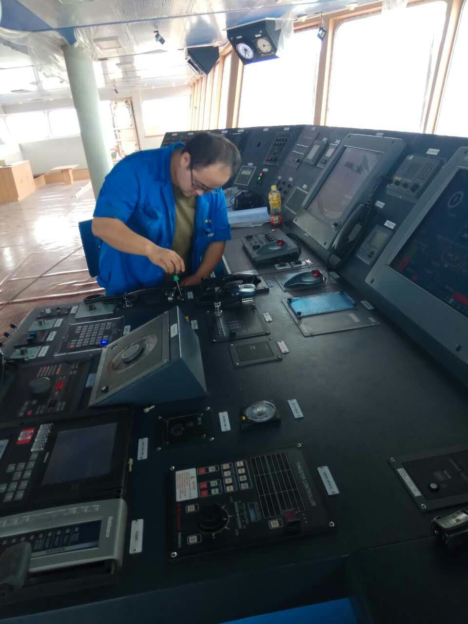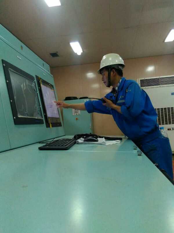 推開集控室的門就被一個(gè)人的氣場(chǎng)所吸引,身材一點(diǎn)兒都不魁梧但給人絕對(duì)精悍的感覺,他就是輪機(jī)調(diào)試員梁桂明。畢業(yè)兩年,早已不再是那個(gè)跟在師傅身后的懵懂少年,現(xiàn)獨(dú)立負(fù)責(zé)BS09船的遙控閥、液位遙測(cè)、壓載水等項(xiàng)目的調(diào)試工作。從艏部空艙到貨艙、壓載艙、管弄、邊空艙……據(jù)說每一個(gè)艙室都是體力活,當(dāng)被問到累不累的時(shí)候他卻笑著說“不累,就當(dāng)鍛煉身體了?!?