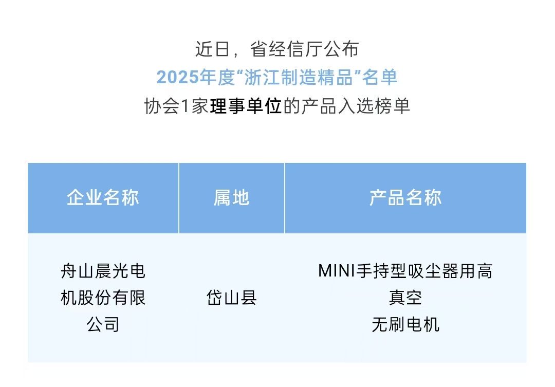 晨光電機(jī)產(chǎn)品成功入選,不僅是對其企業(yè)技術(shù)創(chuàng)新能力、質(zhì)量管理水平及品牌價值的高度肯定,更彰顯了行業(yè)標(biāo)桿的示范效應(yīng)。這一殊榮將激勵協(xié)會會員企業(yè)以更高標(biāo)準(zhǔn)推進(jìn)技術(shù)創(chuàng)新、強(qiáng)化質(zhì)量管控,形成"比學(xué)趕超"的良性競爭氛圍,為舟山經(jīng)濟(jì)高質(zhì)量發(fā)展注入強(qiáng)勁動能,助力區(qū)域產(chǎn)業(yè)向高端化、創(chuàng)新化方向加速躍升。